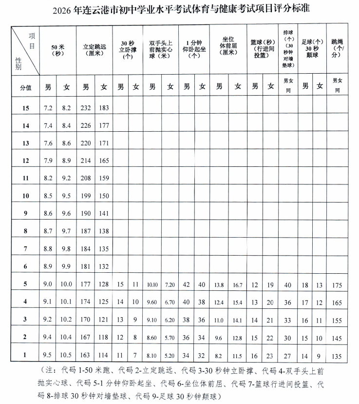 近日,2026年连云港市初中学业水平考试体育与健康考试实施方案已公布,快随小编一起来了解一下——