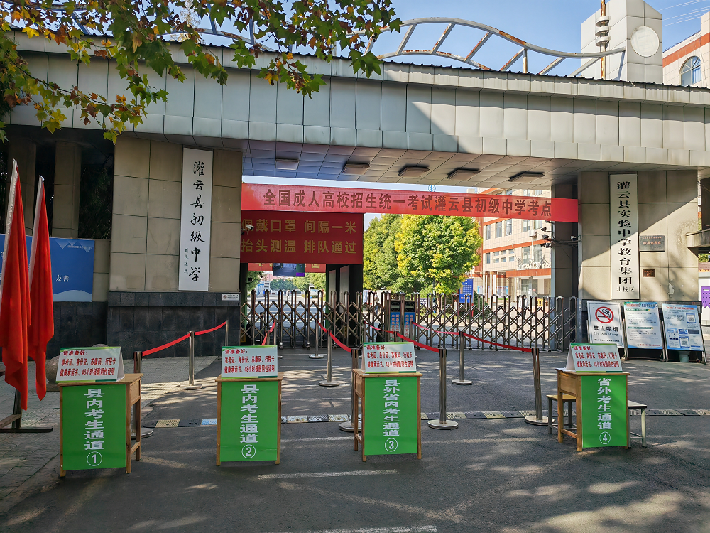 一是加强防范,切实做好防疫工作。灌云初级中学考点按规定设置了备用防疫考场,做好防疫物资储备、考点及考场卫生防疫、消毒消杀等有关工作;考点门口设置四个专用通道,确保符合条件的考生及时有序进入;在校门外循环播放录音,反复提醒考生提前准备进入考点所需提供的材料,确保考点通道畅通;县卫健委派出三名工作人员,指导与协助疫情工作,研判考生情况,耐心做好解释与疏导;整个考试疫情防控有序落实,确保“平安成考”。